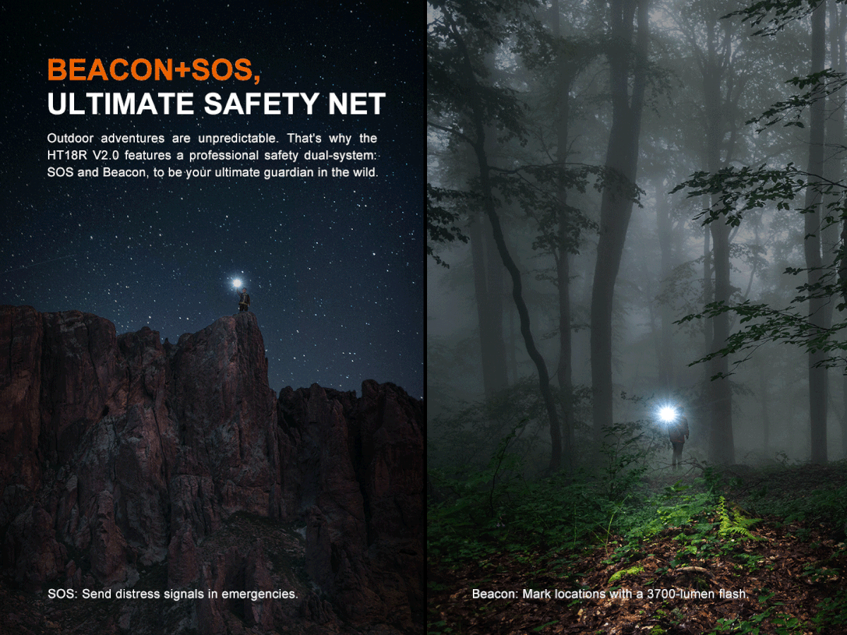 Fenix HT18R V2.0 Multi-mode Outdoor Long-Range Flashlight has been engineered for the demands of todays outdoor adventurers, delivering exceptional performance in every detail. Its smooth reflector produces a razor-sharp beam with a staggering 3700-lumen max output, reaching an incredible 1100 meters for unmatched long-range visibility. Powering the flashlight is simple with its USB Type-C port, paired with a large-capacity ARB-L21-6000 battery that charges up completely in just 1.5 hours. The dual side switch provides instant access to Turbo and Strobe, while specialized modes like SOS and Beacon ensure readiness for any scenario. Built to endure, the HT18R V2.0 is drop-tested to withstand falls from 1 meter and is waterproof to the IP68 standard. From tracking to navigation, this flashlight delivers cutting-edge brightness, rugged performance, and intuitive control – all in one reliable lighting tool.