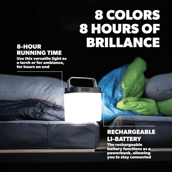 At 400 lumens, this reliable companion ensures you're never left in the dark. It's water and dust resistant and durable, enduring the rigors of outdoor life. Plus, enjoy up to 8 hours of continuous use at its brightest setting, providing lasting illumination throughout your journey. But the GLO-A400 Area Light offers more than just bright white light, with customizable red, green, or blue hues, ideal for making a statement at festivals or setting up camp. The amber glow serves a practical purpose, not attracting insects, and creating a bug-free environment for you to enjoy. Embrace a dynamic lighting experience that adapts to your every move. The GLO-A400 Area Light is your dependable companion, ensuring your outdoor moments are beautifully illuminated and uniquely tailored to your preferences. It's time to discover a new level of outdoor lighting versatility.