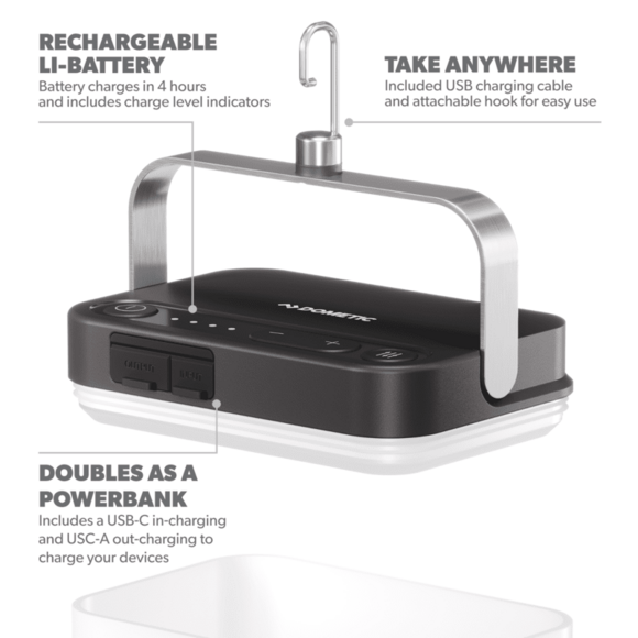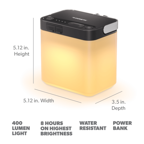 Say goodbye to bulky lighting, the GLO light is conveniently small at 3.5 inches x 5 inches x 5 inches with the dome attached. Minimizing to just over 1 inch without the dome, it also boasts a weight of slightly over 1 pound, ensuring effortless packing.