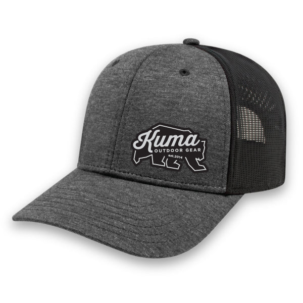 The Kuma heather bear hat is a stylish trucker hat featuring a blend of materials: 47% Cotton, 25% Polyester, and 28% Nylon. The adjustable snapback ensures a comfortable fit for all sizes. The hard buckram and matching under-visor provide durability and style. Complete with Kuma’s original woven label, this hat combines fashion and function effortlessly.